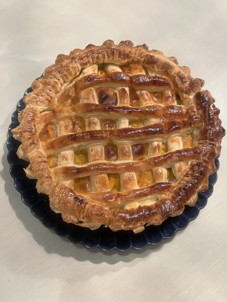 格子状にしたパイ生地をのせて、溶き卵を塗って200度のオーブンで30分